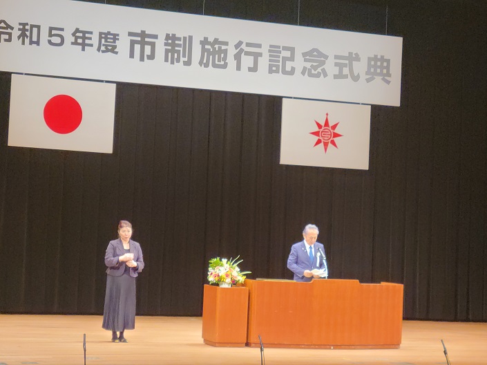 こんばんは。西郷宗範です。2月15日が市制記念日ということで、きょうは文化会館大ホールに…