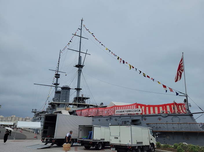 こんばんは。西郷宗範です。きょうは咸臨丸フェスティバル式典へ…通常、表にテントを置いて式…