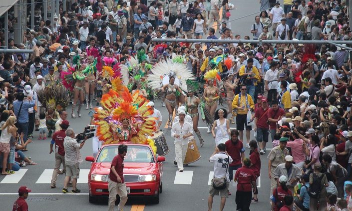 にぎやかなサンバのリズムにのってカーニバルダンサーがおどる姿はにぎやかそのもの…