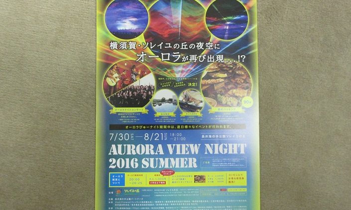 7月30日(土)から8月21日(日)までの18時から21時、長井海の手公園ソレイユの丘において 「オーロラびゅ~ナイト2016サマー」が開催されます。