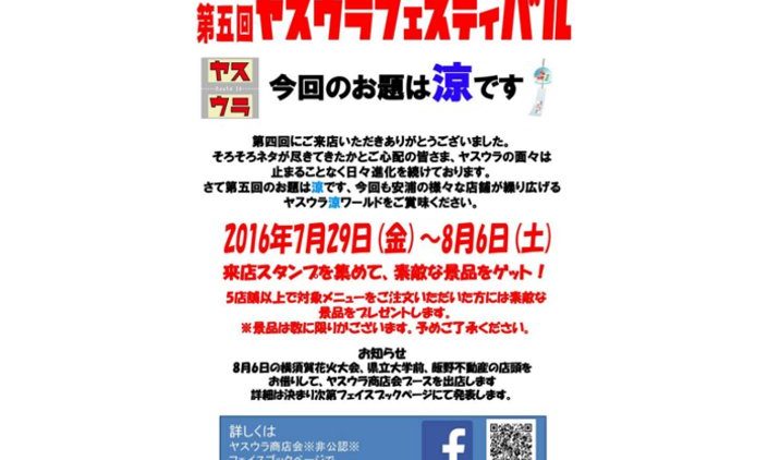 7月29日(金)から8月6日(土)まで第五回ヤスウラフェスティバルが開催されます。