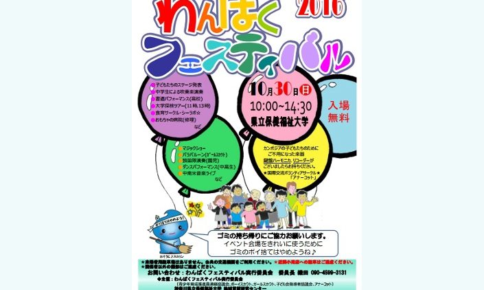 10月30日(日)の10時から14時30分に神奈川県立保健福祉大学キャンパス内において「わんぱくフェスティバル2016」が開催されます。