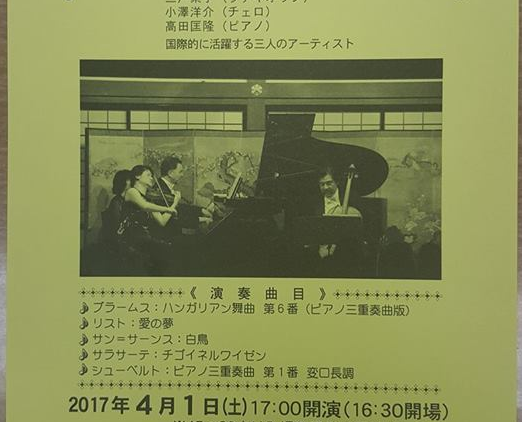 4月1日(土)17時から鎌倉円覚寺方丈において神奈川骨髄移植を考える会主催の第25回骨髄バンクチャリティーコンサート ピアノ三重奏の夕べが開催されます。