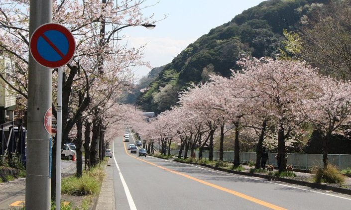 通研通りの桜並木は横須賀の桜並木の中でも人気スポット…