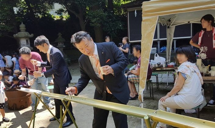 昨日はいつも仲良くしている年下の友人に誘われ、中里神社青年会の流しそうめんへ…