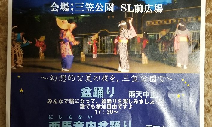 7月16日(日)の送り日に三笠公園でサマーフェスタが開かれます。