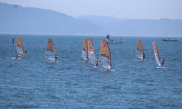 きょう、明日は津久井浜ビーチでウインドサーフィンドリームカップが開催されています。