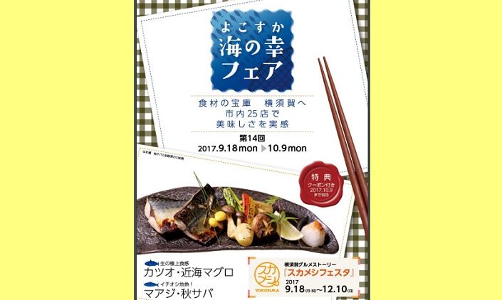 9月18日(日)から10月9日(月)まで第14回 よこすか海の幸フェアが開催されます。