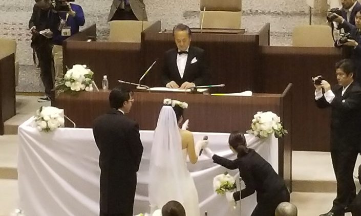 この日に、横須賀市議会本会議場において5組のカップルの結婚式が行われました。