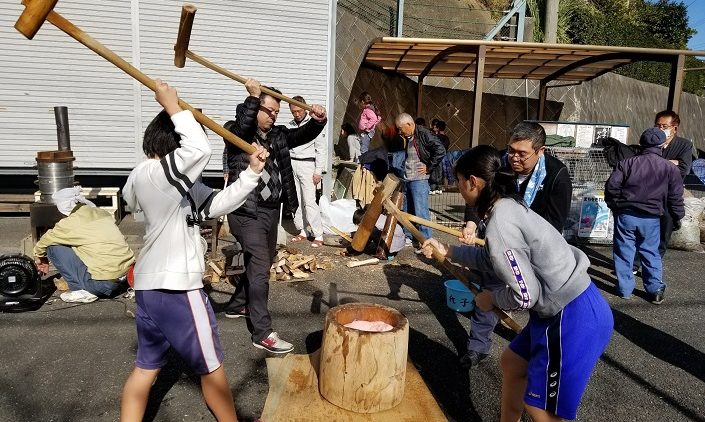 息が合わないと杵同士をぶつけてしまったりと大変…