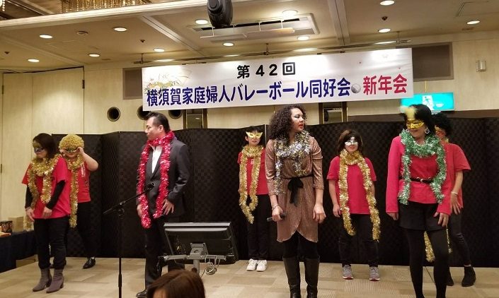 そして、若松マーケットの新年会がおわると、次の横須賀家庭婦人バレーボール同好会新年会の出し物の準備のため1時間ほど練習へ…