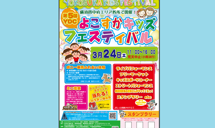 3月24日(土)11時から16時まで横須賀中央がにぎわうイベント「第5回よこすかキッズフェスティバル」&「第8回街市-よこすか-」が開催されます。