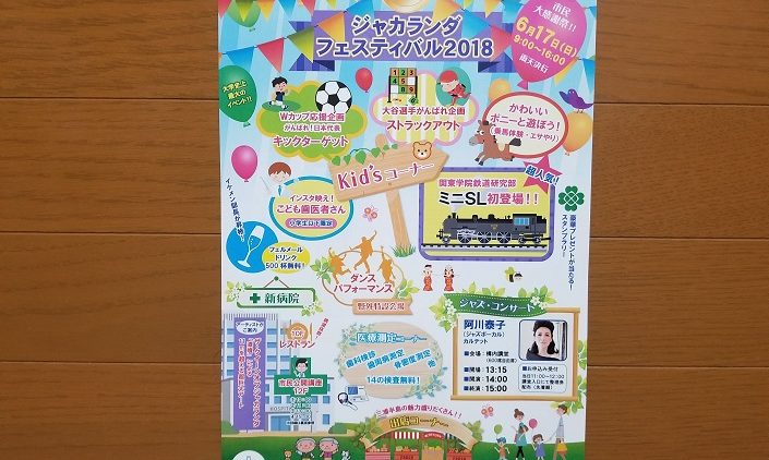 6月17日(日)9時から16時まで神奈川歯科大学においてジャカランダフェスティバル2018が開催されます。