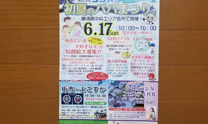 さて、横須賀では6月17日(日)10時から16じまで横須賀中央エリア各所において第2回ヨコスカ初夏のパパまつりが開催されます。