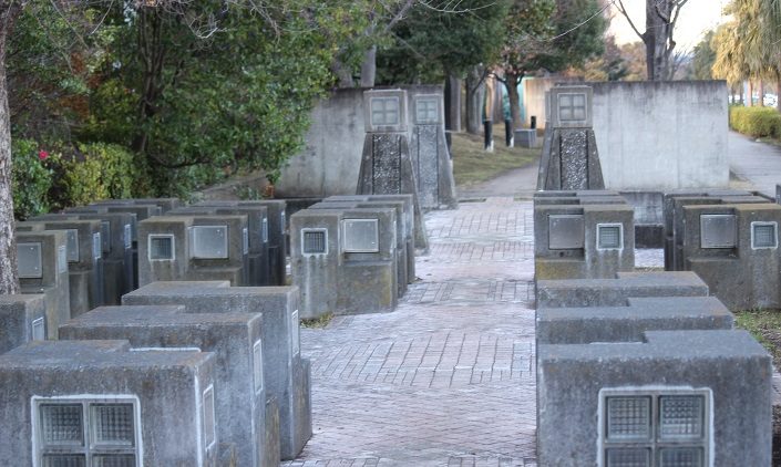 1万メートルプロムナードの平成町部分にあるモニュメントの数々…