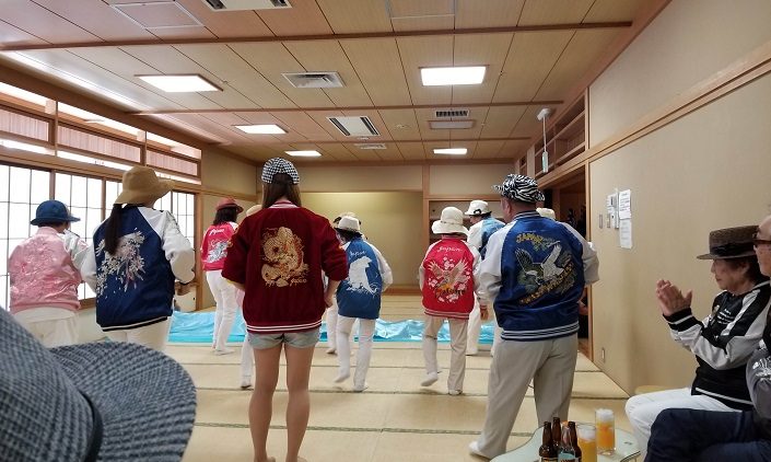 スカジャン音頭で踊っている皆さんの後ろで手拍子しております。