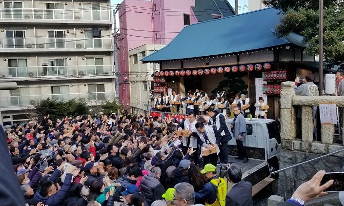 毎年、若松町にある諏訪神社で節分の豆まきをさせていただいています。