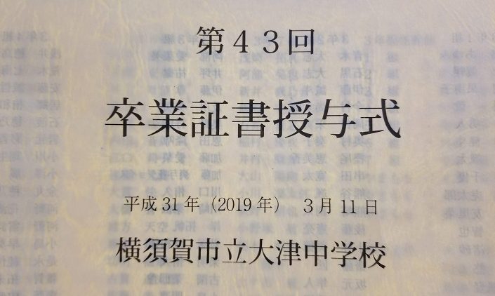 さて、本日は地元の市立大津中学校の第43回卒業証書授与式に参列しました。