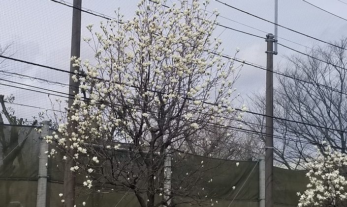 写真は先日通った県立横須賀工業高校わきの並木道に咲くこぶしの花…
