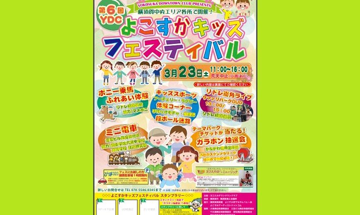 3月23日(土)11時から16時まで京急「横須賀中央」駅Yデッキ下イベント広場、中央大通り、LIDRE周辺 ほか において第6回「よこすかキッズフェスティバル」&第13回「街市-よこすか-」が開催されます。