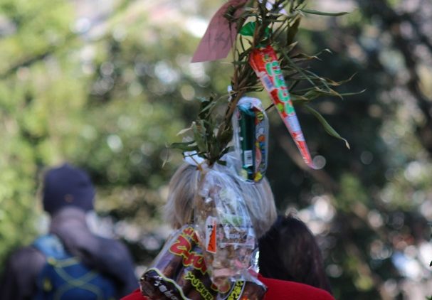 武山初不動の名物といえば、笹についた麩菓子…