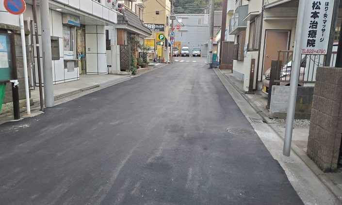 まだ、白線などが書かれていないので完成ではないですが、今までの老朽化したでこぼこの道がきれいな舗装になり、快適に通行することができます。