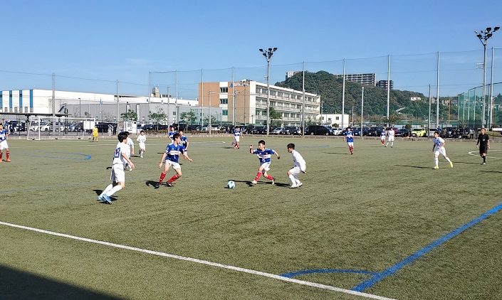 対戦相手の横浜F・マリノスジュニアユースに対して、しっかりとパスコースを消し、チャンスを作らせません。
