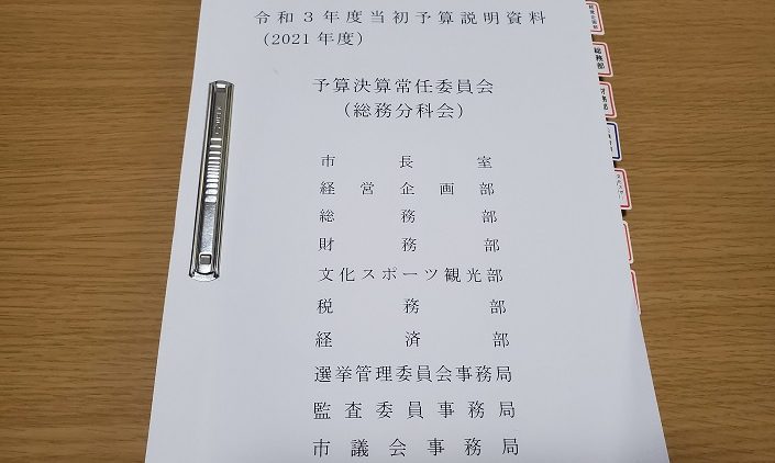 これまで当初予算の審査時には全部局の予算説明資料が紙で配布されましたが、ペーパーレスへの予備段階として担当委員会の資料だけの配布となりました。