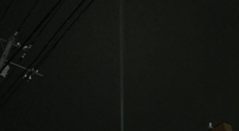 コロナ禍のため関係者のみの点灯式のため、突然空に現れた一本の光にびっくりされた方もいるかと思います。