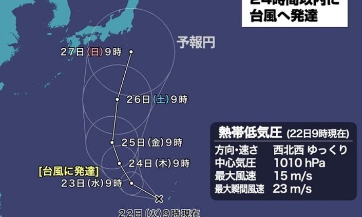 先ほど、マリアナ諸島の熱帯低気圧が24時間以内に台風5号へ変わる見込みとのニュースが流れました。