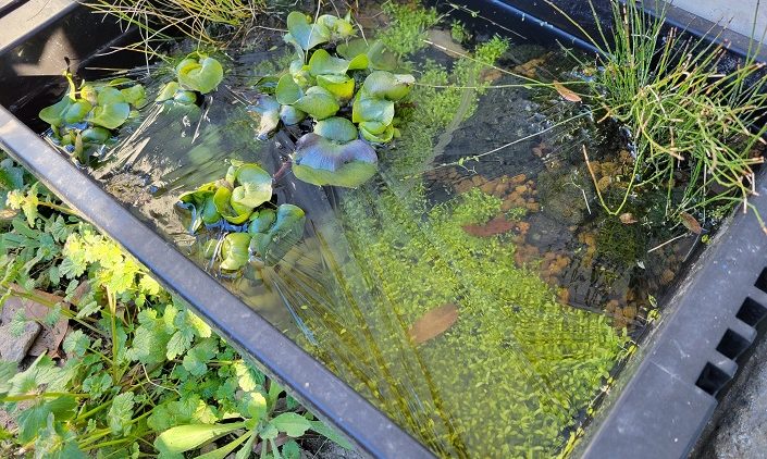 さすがにメダカたちも浮草の下などに隠れているようです。