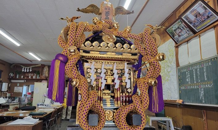 町内神輿を3年ぶりに出し、化粧をして飾り付けました。