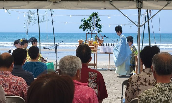 私も神奈川県海水浴場組合連合会顧問を委嘱されていますので、きょうは由比ガ浜で行われた鎌倉の海開きに参加しました。