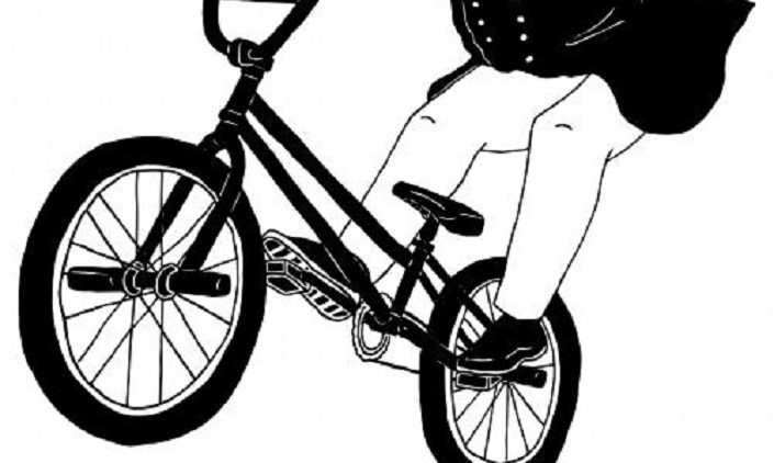 ペリーが、BMXに乗り「マニュアル」をしている様子を、渋くも親しみやすいタッチでイラスト化したものです。