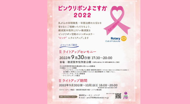 また本日9月30日(金)17時30分から20時まで市役所前公園において、「ピンクリボンよこすか2022」開催されます。
