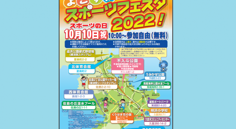 毎年スポーツの日に市内の体育会館等で一斉開催されるスポーツイベント、よこすかスポーツフェスタ2022が10月10日に開催されます。