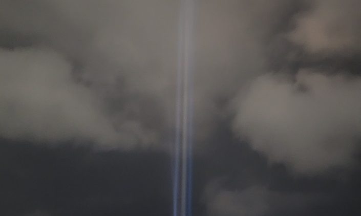 平和をテーマとした「平和の軸」は、恒久平和を願い、祈念し、市全体の平和意識の普及と高揚に繋げることを目的として毎月1日、上空への照射を行っています。