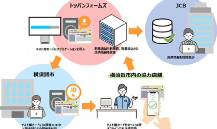 JCBはオフライン環境下で実施された決済情報の精算集計、トッパンフォームズはテスト用マイナンバーカードへのアプリケーションの導入と、決済を行う店舗用決済端末および端末に搭載するアプリケーションの提供を担い、生活彩家(株式会社ポプラ)横須賀市役所店の実店舗を使用して行います。