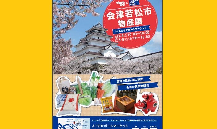 3月4日(土)10時から18時までと3月5日(日)10時から16時までよこすかポートマーケットにおいて、会津若松市物産展~会津の旬の味覚が大集合!~が開催されます。