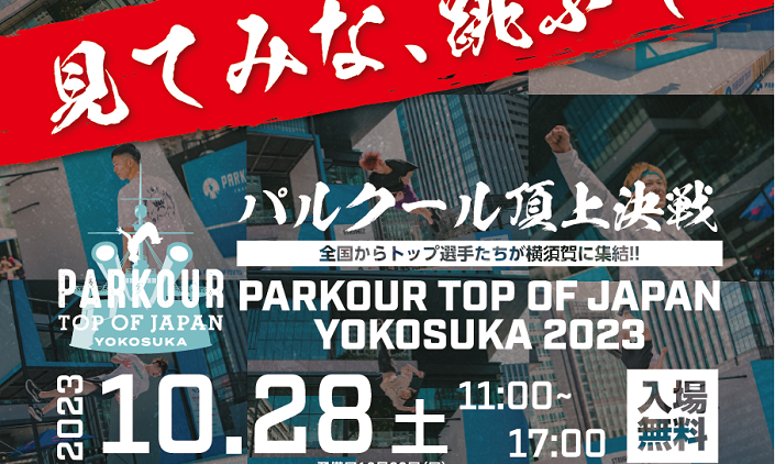 10月28日(土)(予備日:10月29日(日))の11時から17時まで三笠公園 記念艦三笠前広場においてPARKOUR TOP OF JAPAN YOKOSUKA 2023が初開催されます。