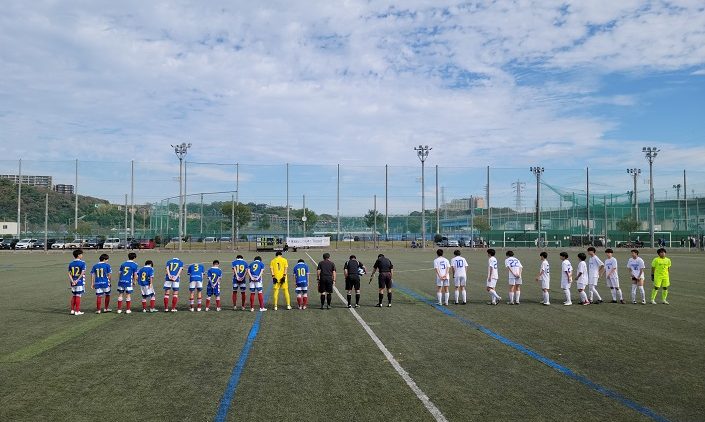 横三地区神奈川県トレセンU14対横浜F・マリノスジュニアユースが対戦しましたが、一進一退の素晴らしいゲームを続け、後半のアディショナルタイムで得た売り―キックをものにしたトレセンが1対0で勝利しました。