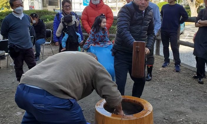 実は一昨日、汐入でも課題となったのですが、餅つきをできる人は多いものの、返しをできる人や餅つき前にもち米をこねる人が少ないことが課題となっています。