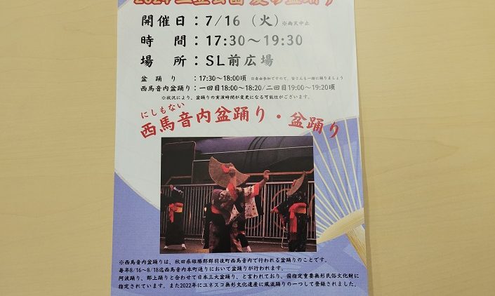 その後、18時から18時20分までと19時から19時20分までの2回、秋田県羽後町の西馬音内盆踊りを実演します。