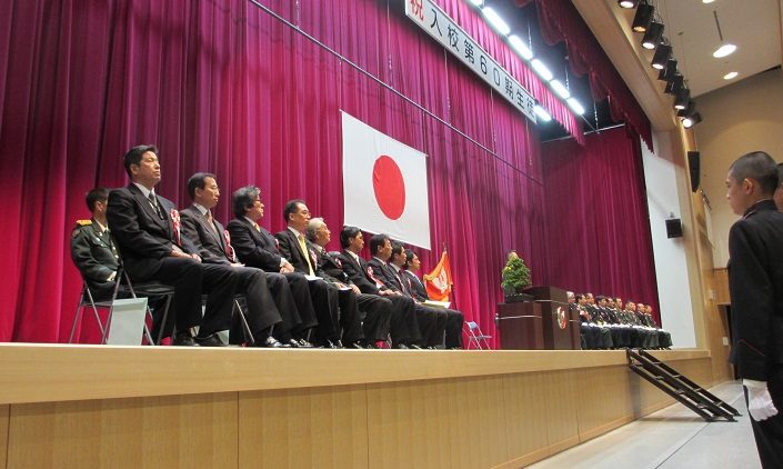 そして、当日を迎え一糸乱れぬ統率で任命、申告、宣誓といった自衛隊の入隊式と同様の入学式を行います。