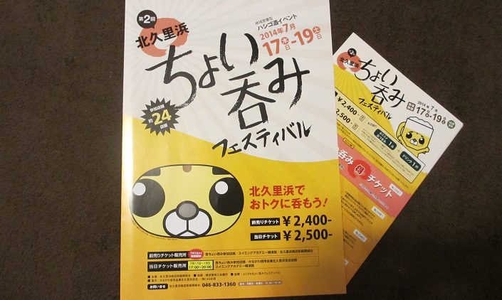 3枚のちょい呑みチケット+300円相当のおつまみと交換できるマル得チケットがついて、開催前日の明日までは前売り価格の2,400円で買えちゃいます。