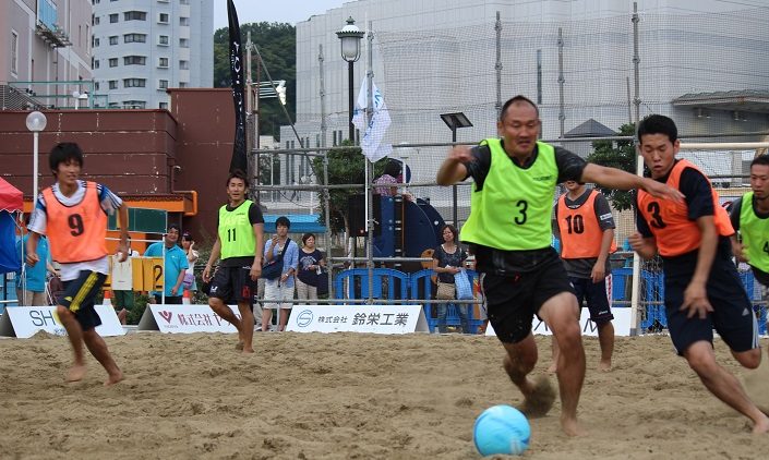 午後に行われたビーチサッカーの一般大会の勝者とゲストチームでの対戦…