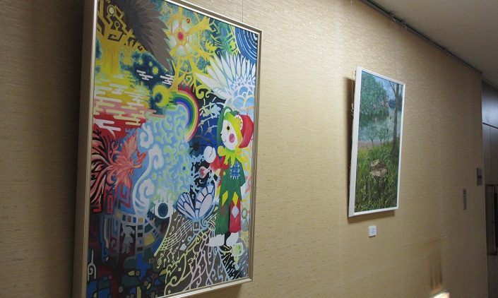普段、市議会の廊下に展示している絵画は茶系統を多用した作品が多いため少し重々しい雰囲気を醸し出しています。