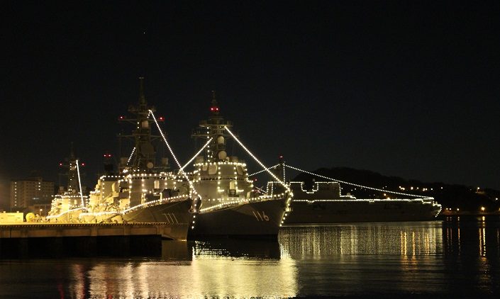 21時からは日米艦船のイルミネーションが灯り、これぞ横須賀という光景が目の前に…