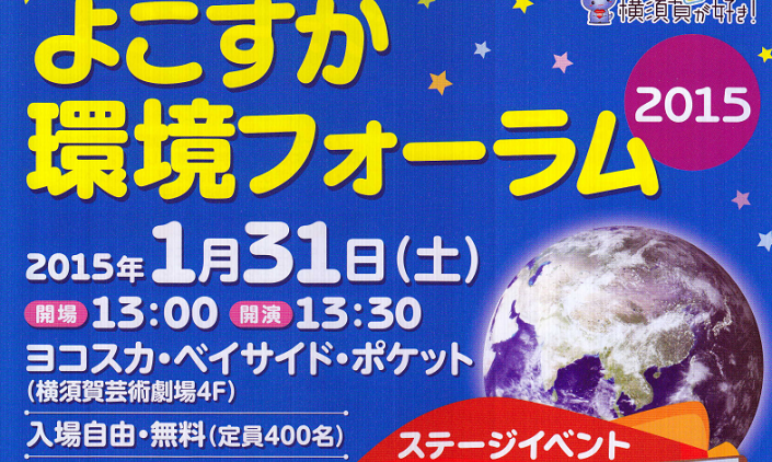 明日1月31日(土)13時30分からヨコスカ・ベイサイド・ポケットにおいて「よこすか環境フォーラム2015」が開催されます。