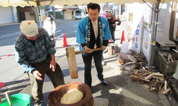 小泉進次郎衆議院議員もかけつけ半纏を羽織ってお餅をつきました。